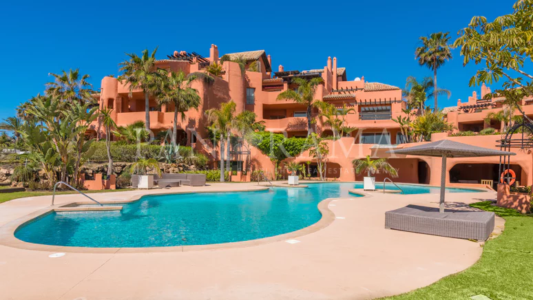 Duplex penthouse within the prestigious beachfront community of La Morera, ranking among the most exclusive developments of its kind. Renowned for its meticulously manicured tropical gardens, La Morera offers both indoor and outdoor pools, a well-equipped gym, and a sauna. Strategically positioned, the penthouse captures breathtaking views of the lush gardens and the Mediterranean Sea. The property is decorated with custom-designed furnishings, all seamlessly included in the offering.