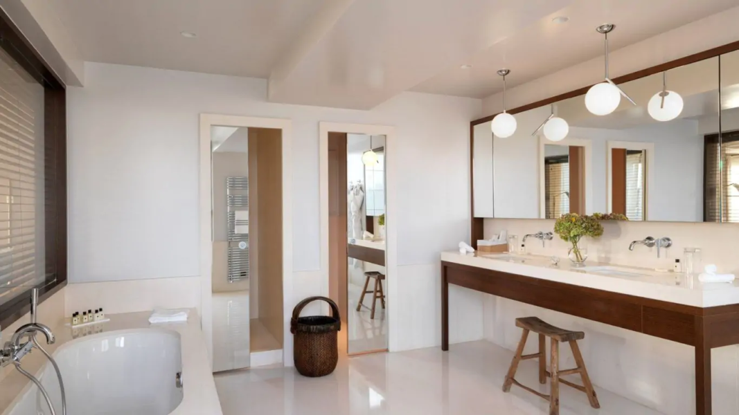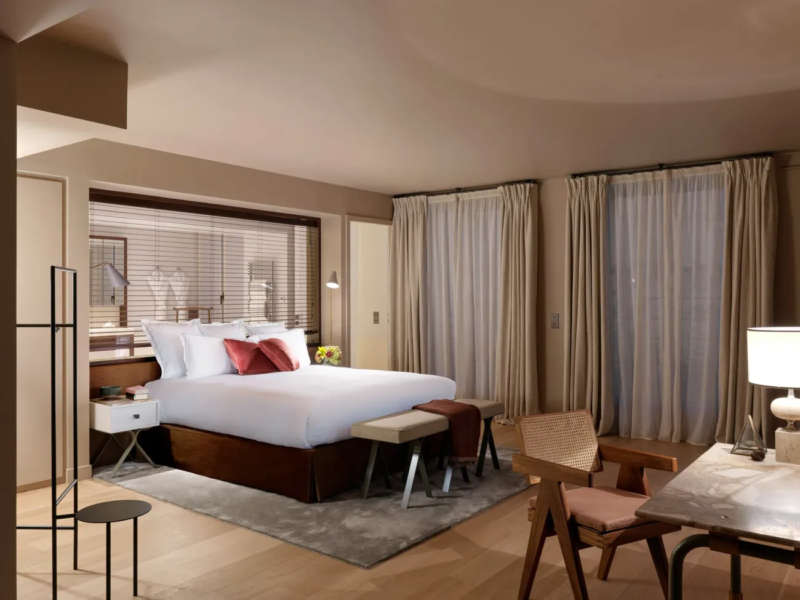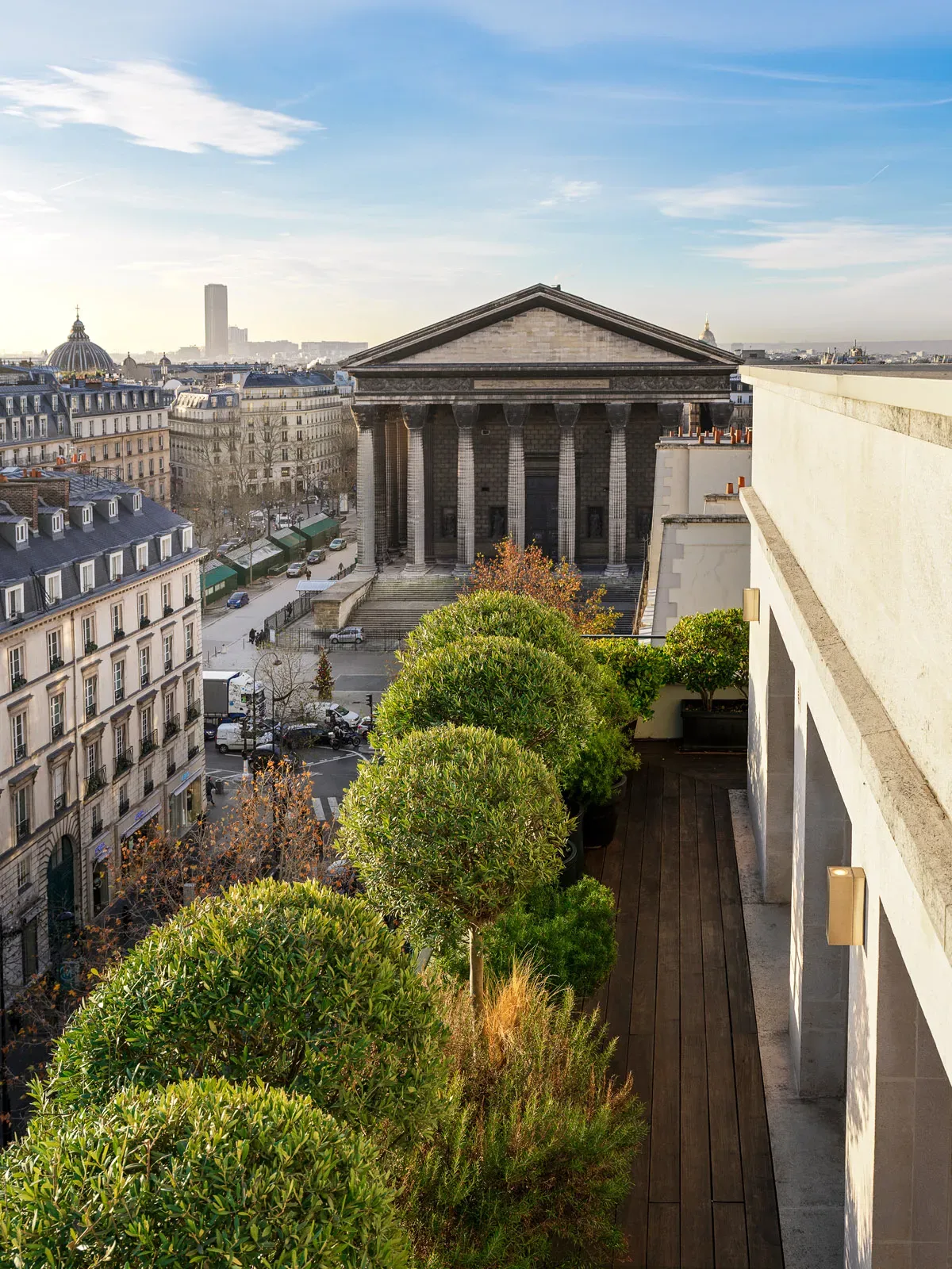 The rare pearl of the Pourtalès: the Sky Penthouse. Between luxury and relaxation, the 367m² triplex leads its guests to the seventh heaven. Over the sixth, seventh and eighth floors, this sophisticated Signature Suite displays a clever play of textures and orange tones, a marriage of stone and soft velvets. Luxurious facilities are provided in the 60m² bedroom with dressing room and en suite bathroom, the two guest rooms with their own bathroom, and a fully equipped galley kitchen with a view. It’s love at first sight with the panoramic 92m² rooftop terrace, with private garden. A 180° visit to Paris!